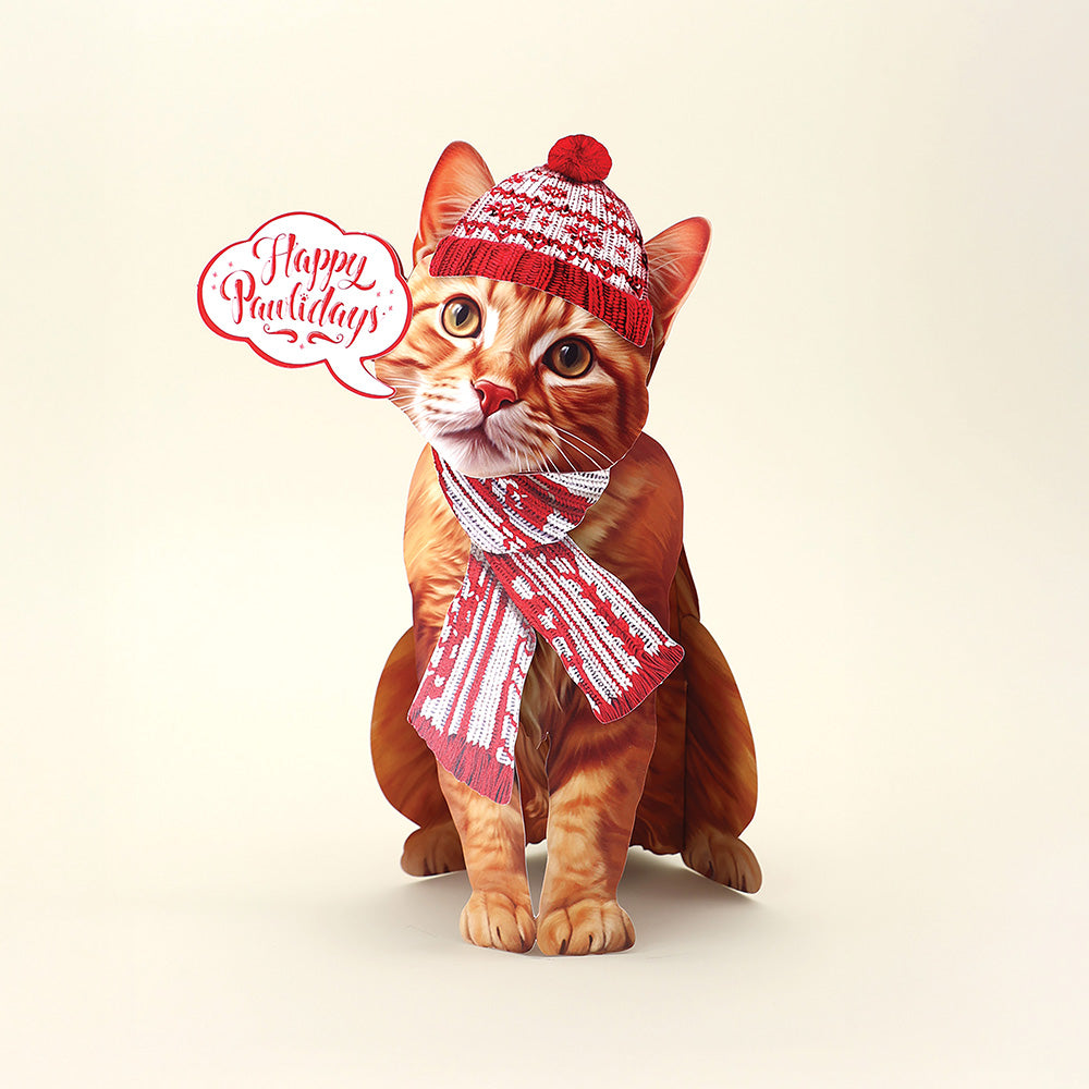 - Holiday Orange Tabby: Make someone’s holiday season extra special with a pawsitively purrfect Pop-Up Orange Tabby Cat! Each adorable pop-up cat features two selections of charming interchangeable accessories: one holiday-themed, the other for the everyday. You’ll also receive a beautifully decorated mailing envelope and a matching notecard. For an extra personal touch, you can add a customizable speech bubble, perfect for sharing cheerful messages with your loved ones. Measures 10" high by 5.5" across.