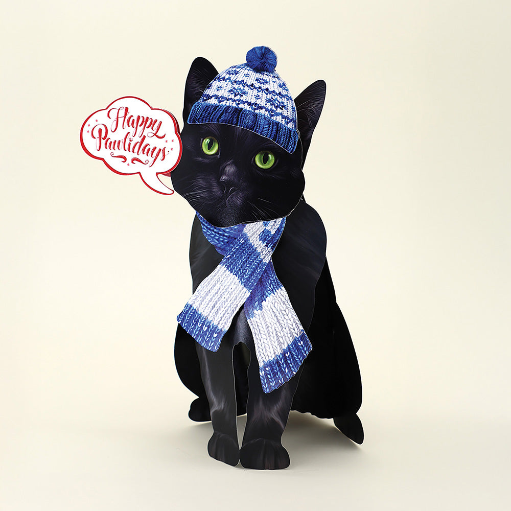 - Holiday Black Cat: Embrace the spirit of the season with our Holiday Pop-Up Black Cat! Each adorable pop-up cat features two selections of charming interchangeable accessories: one holiday-themed, the other for the everyday. You’ll also receive a beautifully decorated mailing envelope and a matching notecard. For an extra personal touch, you can add a customizable speech bubble, perfect for sharing cheerful messages with your loved ones.Measures 10" high by 5.5" across